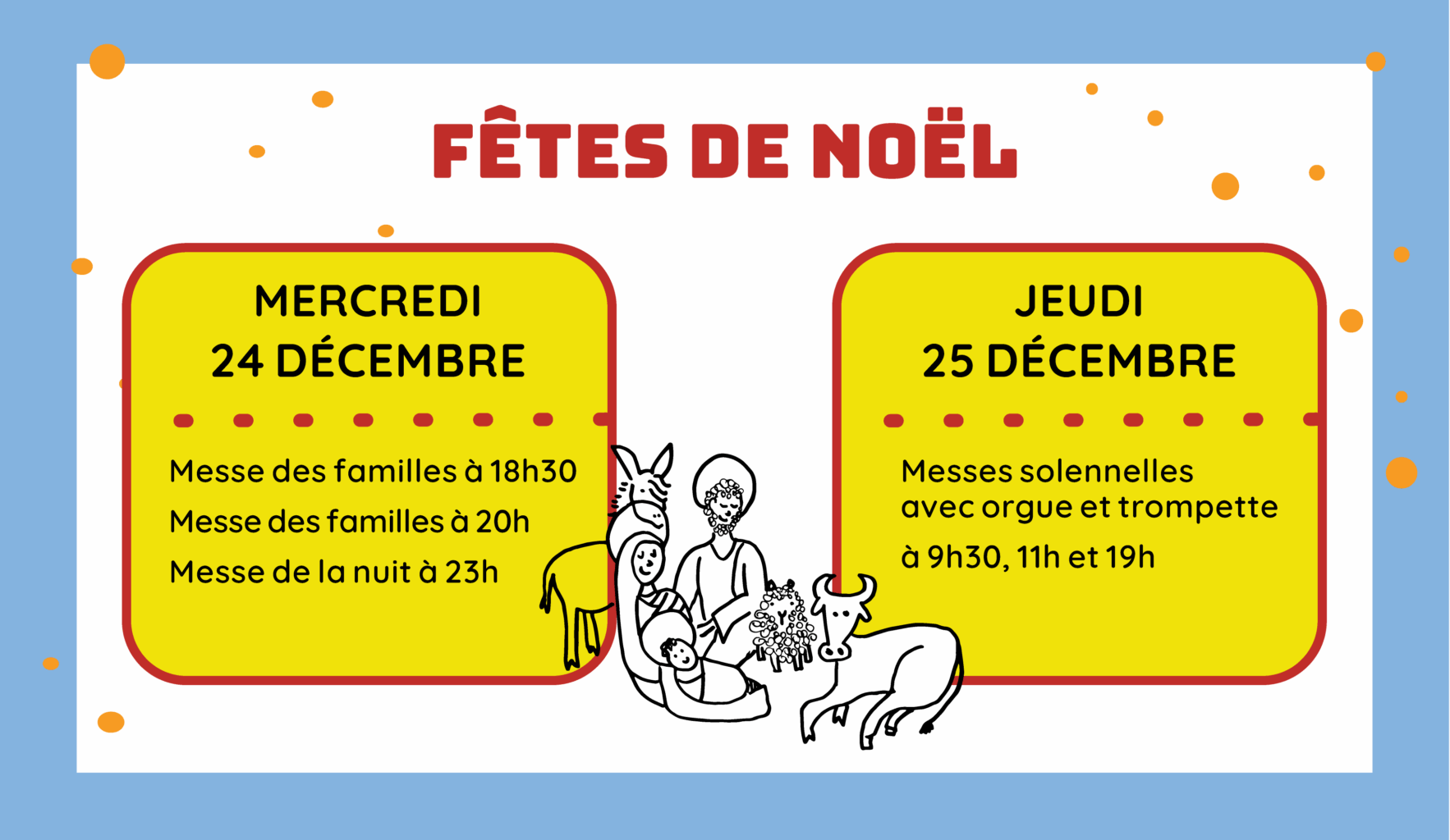 Noël est une grande fête pour les chrétiens ! Nous fêtons la naissance de Jésus. Dans ce petit enfant, c’est Dieu lui-même qui vient au milieu de nous. Il ne vient pas avec puissance, mais humblement dans une étable. Ainsi, il se fait proche de nous, et nous montre son amour infini. Quelle que soit notre vie, nous sommes tous invités à venir le rencontrer.